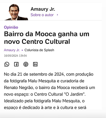 O Jardim é uma galeria e centro cultural de fotografia na Mooca que floresce ideias, encontros e narrativas visuais. Somos galeria, escola, editora e laboratório analógico. Criamos conexões entre artistas, públicos e territórios por meio da imagem e da escuta ativa.